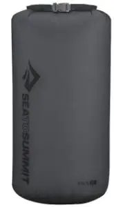 Sea to Summit makes the best ultralight dry bag. I’d urge you not to go cheap if you’re looking for a thin and light dry bag because a poorly made bag is going to get tiny holes, defeating the purpose of a waterproof bag altogether.